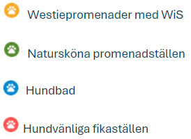 Ta del av våra medlemmars bästa promenadtips och fikaställen. Klicka på de olika tassarna på kartan så kan du bl.a länka vidare till inlägg på anslagstavlan.