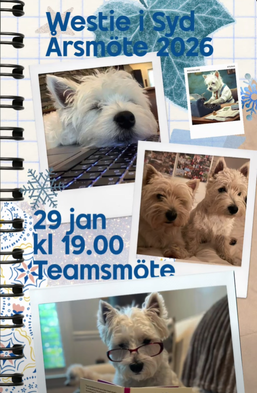 Vilket härligt westieår i WiS vi har haft tack vare er och era fina hundar! Torsdagen den 29 januari kl. 19.00 är det dags för WiS årsmöte. Vi i styrelsen